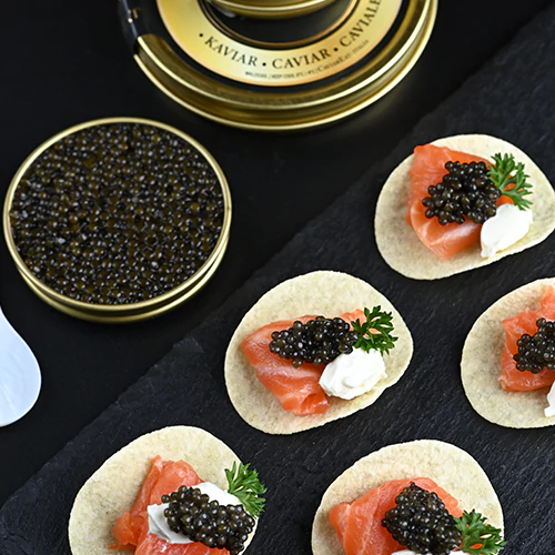 Royal Oscietra from CaviarEat stands out for its refined and layered taste, combining subtle brininess with rich, nutty undertones. The pearls deliver a smooth, creamy burst on the palate, gradually unveiling notes that range from delicate sweetness to an elegant earthy finish. Sourced from the crossbreed of Acipenser Schrenckii and Huso Dauricus sturgeon, the caviar features golden to deep brown pearls with a signature creamy texture. Perfect for fine dining and special occasions, it enhances every dish with a touch of sophistication.